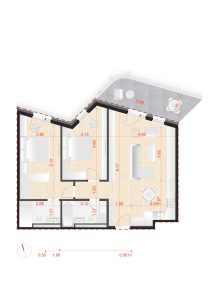 Apartamentul are 76 mp utili, este situat la etajul 8 și beneficiază de ferestre ample ce deschid perspective largi către natură și ritmul orașului. Spațiul este inteligent configurat și include: