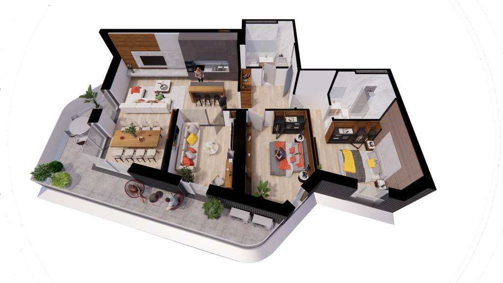 - Un living aerisit cu bucătărie open-space, locul ideal pentru momente petrecute în familie