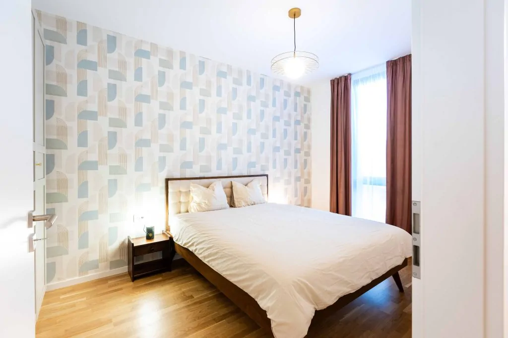 - Un dormitor luminos, ideal pentru odihnă și relaxare